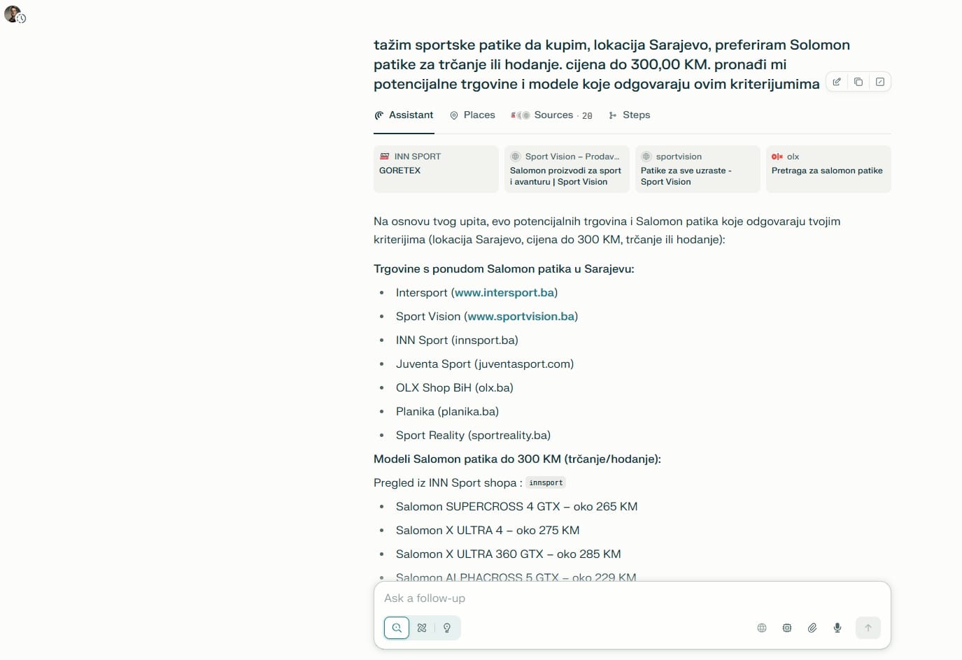 AI u svojim rezutlatima odradi veći dio posla koji bi ja morao, klikne (otvori) na 3-5 linkova, pročita sadržaje, sumira i da zaključak, ako je upit bio u tom smijeru. Dobijene informacije je obično lako provjeriti jer AI rezultat uključi linkove prema izvorima sa kojih je preuzeo podakte.